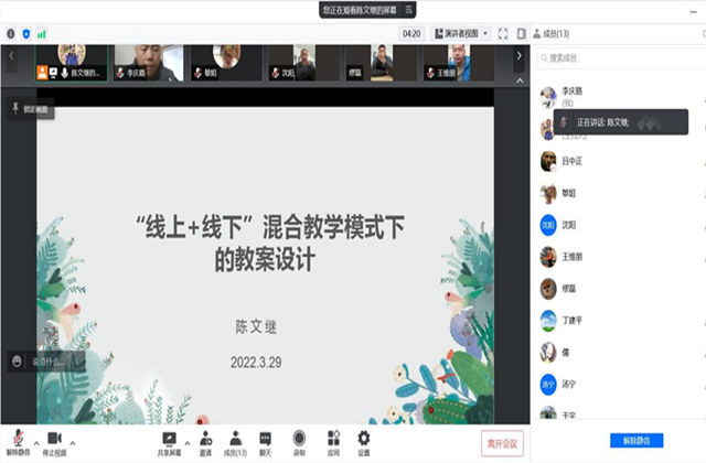 通过此次教学研讨,各位老师认为:相对于传统的教案设计,混合教学模式的教案设计,可以让教师和学习者更加明确教学和学习的目标,同时借助灵活的线上教学方式,准确地根据学习者的特点,实施既定的教学方案,从而有效地控制教学过程,达到优化教学效果的目的。大家都表示在后续的教学过程中将积极尝试,运用混合教学模式不断优化提升自己的教学方式。