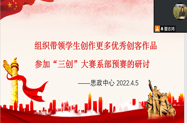 接着,思政中心围绕着如何组织带领班级学生创作更多优秀创客作品参加三创大赛系部预赛进行了讨论。潘久伟老师指出:一、教师要对学生进行引导,多鼓励、多支持,激发学生的内驱力;二、配合专业教师,推荐给学生好的网站、成功案例,启发学生的思维创新;三、帮助学生从创新小制作做起,寻找创新点。杨劲静、许青娟等多位老师指出:一、在教学中,讲授一些我院学生参赛获奖的案例;二、找准创新意识培养在《思想道德与法治》、《毛泽东思想和中国特色社会主义理论体系概论》课程中的融入点。例如,科学发展观、国家安全观、新发展理论、改革开放理论等部分内容教学中。
