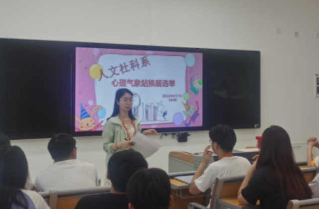 为进一步加强人文社科系心理气象站的组织建设,切实提升学生干部队伍工作能力,充分发挥学生自我教育、自我服务、自我管理和自我监督的作用,本着“公平、公正、公开、竞争、择优”的原则,6月6日,人文社科系心理气象站在指导老师沈婷老师的主持下,组织开展了 2022年主要学生干部换届选举兼学期末工作总结会议。