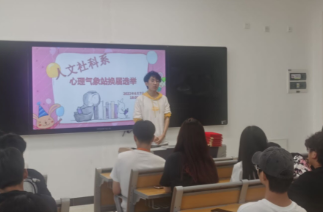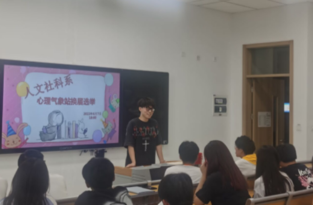 本次换届选举通过学生自主报名、组织推荐、资格审查、竞选答辩、综合考察等环节,结合学生日常工作能力表现,经决定,拟聘郭尚霖等 10 名同学为人文社科系心理气象站主要学生干部,同时气象站内部组织结构、部门工作职责进行了调整完善。
