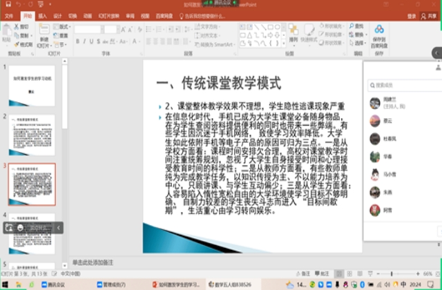 首先,蔡云老师根据多年来的教学经验,分别从传统教学模式,国外教学模式,学生喜欢的学习方式以及教师在学生学习动机激发中的作用等几个方面和老师们进行了积极探讨。