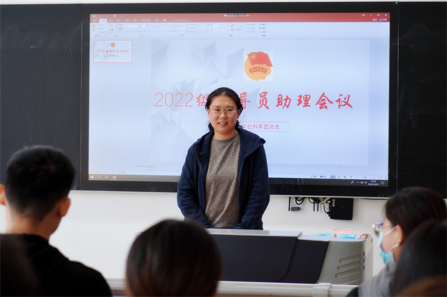 10月25日,人文社科系团总支在博学楼205教室开展2022级新生辅导员助理工作总结交流会。人文社科系党支部副书记叶绘、系学工干事张文婷老师、2022级新生辅导员代表朱时君老师和2022级新生辅导员助理参加交流会。交流会由人文社科系办公室主任兼团总支书记杨军老师主持。