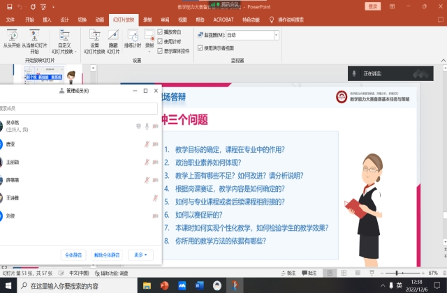 首先,吴卓然老师从教学比赛环节的设置,教学比赛资源的建设,教学优秀案例的分析三个方面进行了分享,尤其重点分享了教学比赛案例观摩的心得体会。