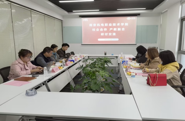 2023年3月22日上午,人文社科系主任曹安林、党支部副书记叶绘、金融科技应用专业负责人孟秋彤、学生干事张文婷老师赴江苏知链科技有限公司,围绕“南京机电•知链金融科技产业学院”年度建设目标和学生岗位实习计划进行了交流研讨。