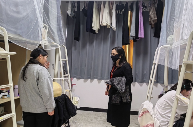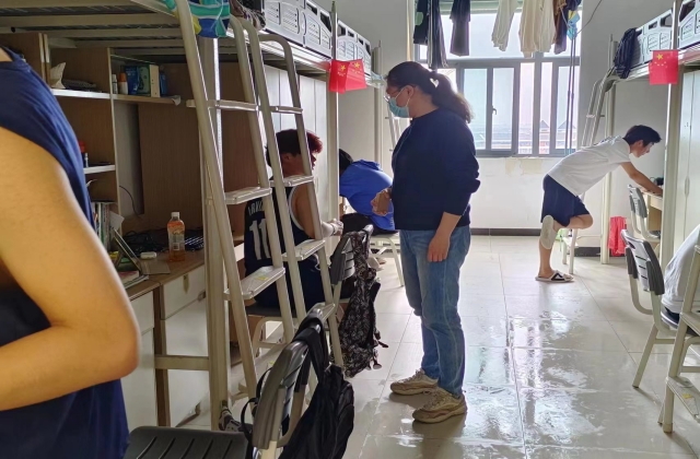 各位党员老师进入宿舍后,认真仔细地检查了学生宿舍的卫生状况,并督查是否有使用违规电器的情况,告知学生不要在宿舍等禁烟场所吸烟,要自觉维护宿舍的环境卫生,共同创建一个安全文明的学习生活环境。此外,各位党员老师也从思想、学习、生活、心理健康等方面和学生进行了交流,了解了学生近期的学习生活情况。