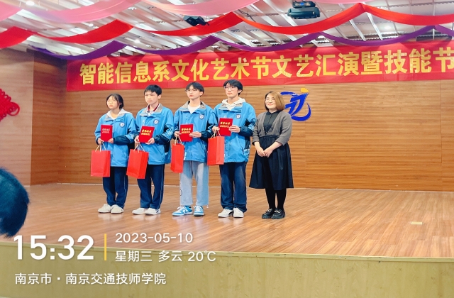 接着,在南京交通中等专业学校智能信息系文化艺术节文艺汇演暨技能表彰大会上,系部主任曹安林宣读了《乐投线上平台(集团)官方网站、南京交通中等专业学校关于2022-2023学年度江苏省现代职教体系3+3项目“优秀学生”的表彰决定》,并为获奖学生颁发证书。系部副主任啜春红为2022级的项目班级颁发班牌。