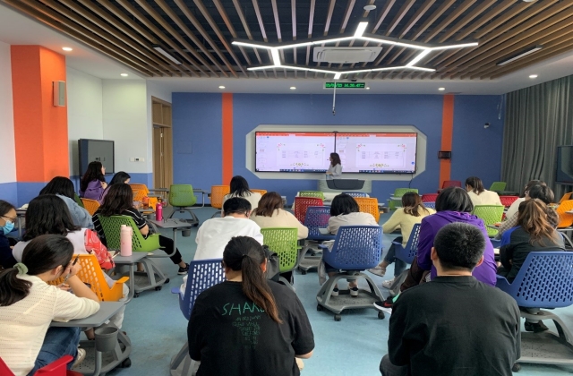 接着,李萍老师围绕“说非遗故事,品中式佳肴——小谈课堂革命之主题设计”做了主题分享。李萍老师指出,本堂课的教学设计中,她有机融入思政元素。通过饮食文化的教学,培养学生的文化自信与批判思维能力。在教学方法上,通过翻转课堂、线上线下混合式教学、情境教学法、角色扮演等,充分调动学生的积极性,让学生成为课堂教学的主体。