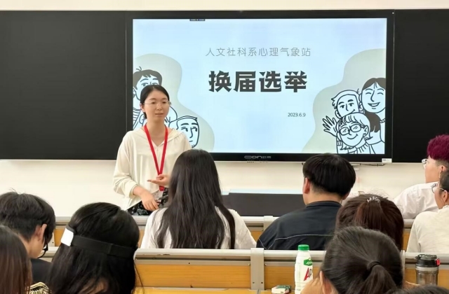 2023年6月13日,为进一步加强人文社科系心理气象站的组织建设,切实加强学生干部队伍建设,充分发挥学生自我教育、自我服务、自我管理和自我监督的作用,促进人文社科系心理气象站工作的全面发展,本着“公平、公正、公开、竞争、择优”的原则,人文社科系心理气象站组织开展了2023年主要学生干部换届选举以及学期工作总结会。