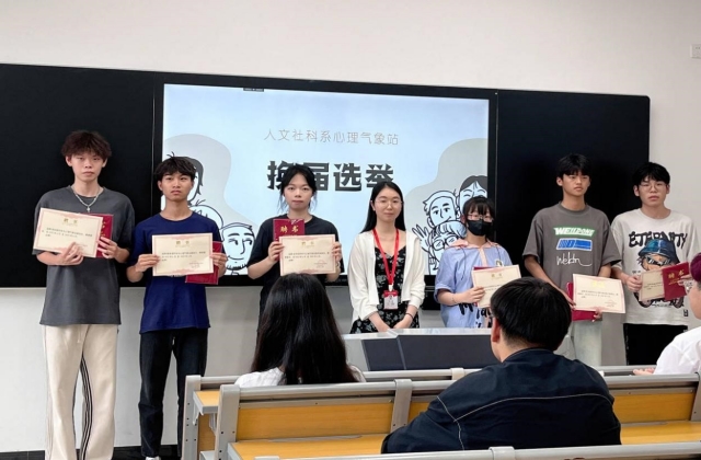 其次,进行换届选举,通过学生自主报名、组织推荐、资格审查、竞选答辩、综合考察等环节,结合学生日常工作能力表现。经决定,拟聘钱丹等7名同学为人文社科系心理气象站新一届主要学生干部。