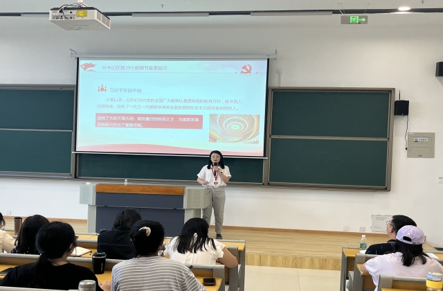 2023年9月10日是第三十九个教师节,也是党的二十大胜利召开后的第一个教师节。习近平总书记专门给全国优秀教师代表座谈会与会教师致信,向他们和全国广大教师及教育工作者致以节日问候和诚挚祝福,鲜明指出了中国特有的教育家精神的深刻内涵,对广大教师提出殷切期望,为新时代教师队伍建设指明了前进方向,提供了根本遵循。为深入学习贯彻习近平总书记教师节重要指示精神,9月19日下午,人文社科系在勤学楼101开展关于教育家精神的学习,本次学习由人文社科系党支部副书记叶绘主讲,人文社科系全体教职工参加。