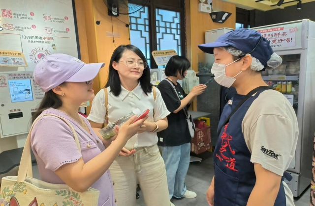 在南京茶悦你我餐饮管理有限公司实习的同学分布在各个门店,首先前往南京总统府1912茶叶子门店,看到正在忙碌的学生,倍感亲切。同学脸上洋溢着笑容,和老师、负责人攀谈起来。实习的同学能够很快适应工作,并且能顺利通过考核,得到企业的认可,值得欣慰。随后叶书记一行走访了南京夫子庙游园会门店、南京新街口大洋百货门店,看望正在实习的同学们。