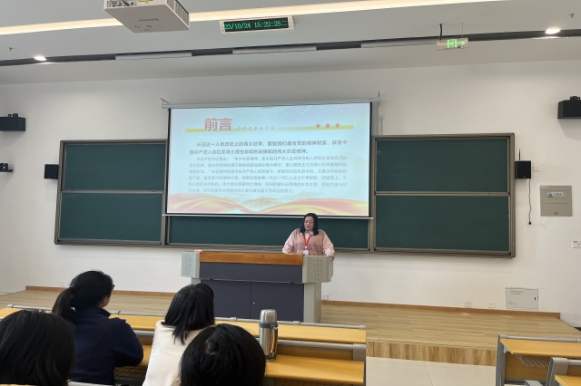马老师围绕着“弘扬长征精神”这一主题,分别从“什么是长征精神?”“伟大长征为何胜利?”“长征精神的时代价值”等内容进行深入地讲解。她强调,长征精神既是中国共产党人艰苦奋斗、砥砺前行的生动体现,又是中华民族自强不息、追求复兴的精神丰碑,鼓舞和激励着一代又一代仁人志士不畏艰险、迎难而上,不断从胜利走向胜利。