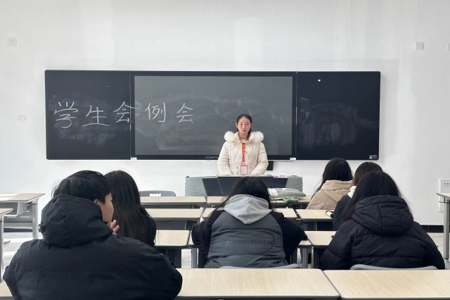 会议伊始,杨闪悦提到本次例会是这学期最后一次例会,她提醒同学们临近期末考试,注意诚信考试、不要挂科,如果是学生会干事或班级干部挂科会被辞退;前不久因下雪道路湿滑,提醒同学们注意安全,要有好身体才能更好地学习。
