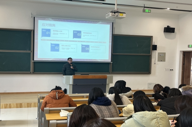丁然围绕着学校信息中心的设置、职责以及分工,学校的网络现状及相关的防护措施进行详细地介绍。他表示学校自搬迁至高淳校区之后,高度重视网络信息安全,目前已经建立起了相对完备的网络信息安全制度,如《乐投线上平台(集团)官方网站网络安全运维管理规范》等制度规范。他强调,维护网络信息安全人人有责,各位老师要把好网络入口关,可以设置复杂密码,定期修改密码,设置锁屏密码等;要把好上网行为关,不随意点击不明链接,不随意下载不明软件等;要把好数据保密关,不外流师生信息,及时关闭线上表格等;要把好教育宣传关,面向学生做好网络宣传工作。