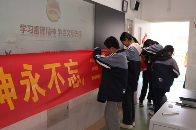 活动过程中同学们踊跃发言,一一讲述着自己作为一名初中生如何在学校、在家里、在社会上践行雷锋精神,活动的最后新时代小雷锋们在横幅上写上了自己的名字。