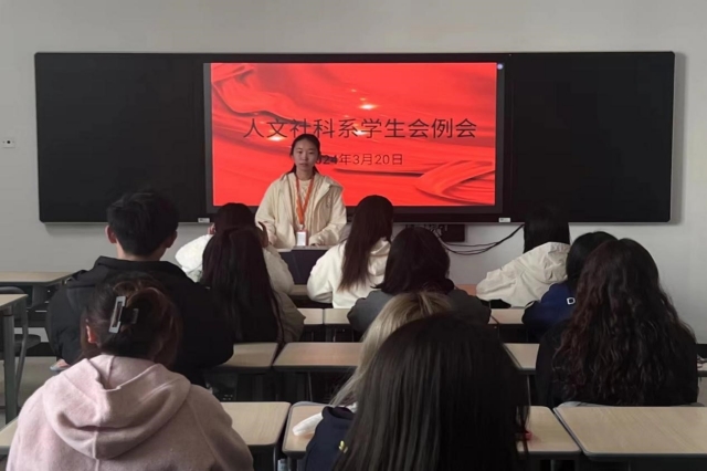 新学期新风貌,工作学习更高效。为了更好地推动我系学生会工作的开展,加强学生会成员间的沟通与交流,培养成员的集体意识和责任感,提高各部门之间工作的协调能力,人文社科系于2024年3月20日中午12:30在博学楼112召开了人文社科系学生会3月例会,会议由学生会主席杨闪悦主持,出席此次会议的有学生会指导老师梁娟娟,以及学生会全体成员。