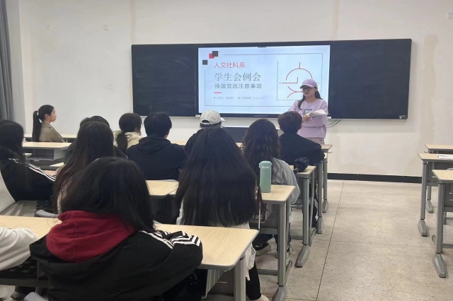 2024年4月17日中午12:00人文社科系学生会在博学楼110召开学生会例会。本次例会由学生会主席杨闪悦主持,学生会指导老师梁娟娟老师及全体学生会成员出席本次例会。