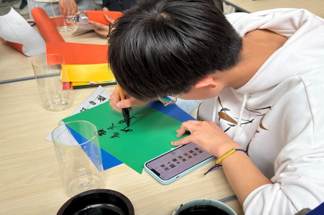 活动现场,同学们充分展现了他们的创新思维和手工技艺,利用各式各样的素材制作出了独具特色的手工艺品。他们中有的运用彩纸精心制作出别致的飞花令书签,有的则用矿泉水瓶巧妙打造出可爱的飞花令灯笼,更有同学利用废弃物品创作出富有创意的飞花令装饰画。每位同学都沉浸在自己的创作世界中,用诗词和画笔诠释着飞花令的魅力。