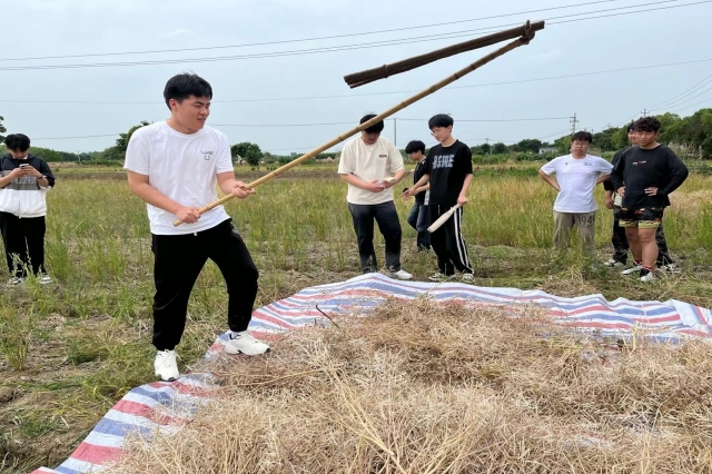 活动开始前,基地工作人员向同学们介绍农耕文化的历史背景、特点和意义,让大家对农耕文化有更深入的了解。实践过程中工作人员先示范如何使用打菜籽工具,包括正确握持姿势、操作方法等。同学们或单人操作,或组队协作亲手体验打菜籽的过程。活动结束后,同学们将打出的菜籽进行称重、展示,让大家看到自己劳动的成果,感受到收获的喜悦。