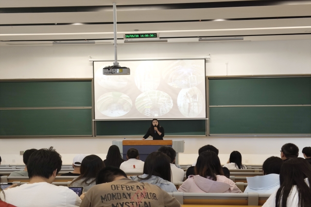 企业负责人慎波为学生们带来了精彩的分享。他首先介绍了南京盛庭科技有限公司在婚礼堂设计和装潢设计领域的专业经验和成功案例。慎波表示,设计不仅仅是美观,更是文化与情感的融合,尤其是在婚礼堂设计中,每一个细节都承载着新人对美好生活的期望和憧憬。