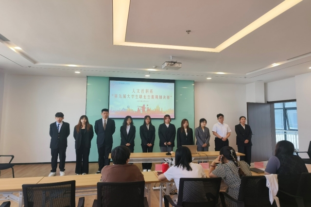 为引导学生树立正确的职业观念,提前规划自己的职业生涯,人文社科系于2024年6月12日中午12:00在弘德楼702举办了职业规划大赛系部选拔赛。本次比赛特邀就业创业中心主任顾窗林出席,人文社科系党支部副书记叶绘、壹生涯工作室负责人吴瑶、辅导员代表张文婷担任本次比赛评委。