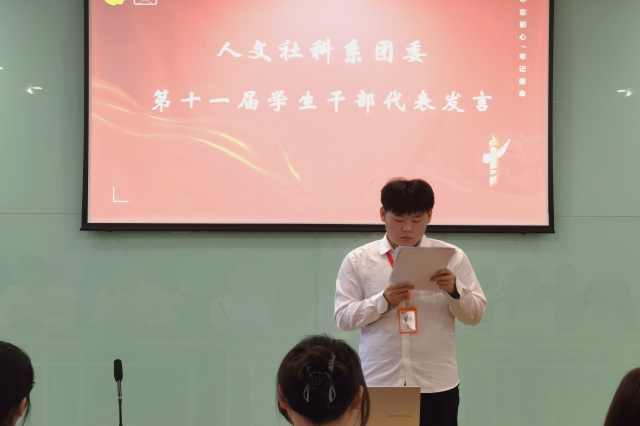 会议伊始,首先由系团委第十一届委员会学生干部代表韩贻超上台做工作总结,他回顾了过去一年系团委在思想引领、组织建设、校园文化等方面取得的成绩,同时也指出了存在的不足和需要改进的地方。