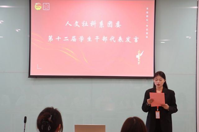 系团委第十二届委员会学生干部代表徐瑞雪进行发言。她表示将继承和发扬团委的优良传统,以更加饱满的热情和更加坚定的信念,投入到系团委的各项工作中去。