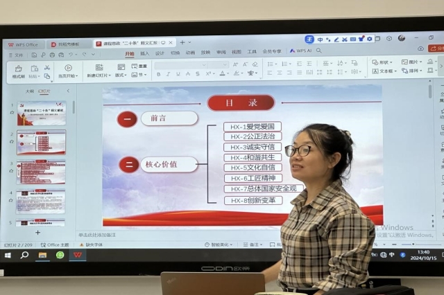 接着,杨劲静老师就《课程思政二十条》纲要中涉及的重要内容,如思想政治教育贯穿人才培养体系、全面推进高校课程思政建设、发挥好每门课程的育人作用以及提高高校人才培养质量等方面,与本教研室的老师们进行了详细的分享。
