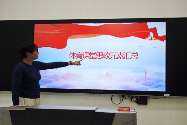会上,余老师率先将自己总结和提取的相关思政元素向参会老师逐一分享。结合党支部特色党建工作安排,思政中心的陈璐璐老师参与了本次研讨会。陈璐璐老师对余老师分享的元素表示认同,她提出“体育就是行走的思政课,思政元素无处不在”,并举例说明在她的课堂上,经常会通过引用体育比赛,讲解和展示我国体育事业的发展历史与成就,以此激发学生为国争光的热情,且学生的学习兴趣颇高。