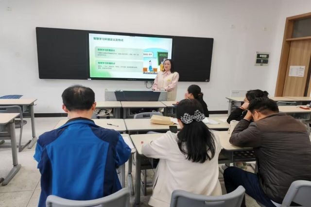 首先,马小雪老师根据多年来的教学经验,分别从智慧学习环境的定义,智慧学习环境的特点、技术应用、学习资源、学习方式等几个方面和老师们进行了积极探讨。