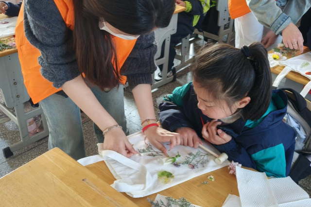 在实践环节,现场气氛热烈非凡。孩子们兴奋地在分发的植物材料中挑挑选选,精心构思着自己的创作布局。一时间,锤子的敲击声、孩子们的欢声笑语交织在一起,谱写成一曲欢乐的乐章。随着一幅幅色彩斑斓、充满生机的植物拓印作品在大家手中诞生,活动也逐渐步入尾声。同学们纷纷表示,这样的活动既亲近自然,又激发了创造力,意义非凡。