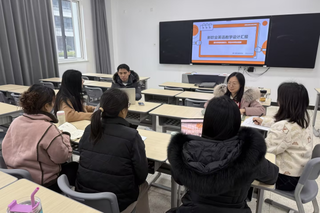 此前两周,英语教研室围绕“AI技术赋能英语教育教学”已展开深入研讨,为本次教学设计筑牢根基。在本周的汇报中,每位教师都在各单元教学设计里巧妙融入AI技术,展现了AI在新职业英语教学中的创新应用。