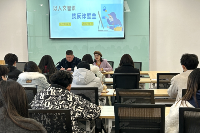 会议伊始,梁娟娟针对大学生社会经验不足、易受虚假信息诱导的特点,开展反诈宣传教育。她点明反诈对校园安全的重要性,剖析网络贷款、电信欠费、兼职等常见诈骗手段,并结合真实案例,揭示诈骗分子利用受害者心理弱点的作案方式。针对这些问题,梁娟娟分享了一系列行之有效的反诈方法与技巧,反复叮嘱同学们在日常生活中务必保持高度警惕,坚决不随意透露个人关键信息,对不明链接更是要做到“零点击”。一旦遭遇可疑情况,要第一时间与老师、辅导员取得联系,或者直接向警方求助,呼吁同学们化身反诈知识传播者,将所学的反诈知识传递给身边的家人、朋友,通过“小手拉大手”的方式,不断拓展反诈宣传的覆盖范围,齐心协力提升全社会的反诈意识。