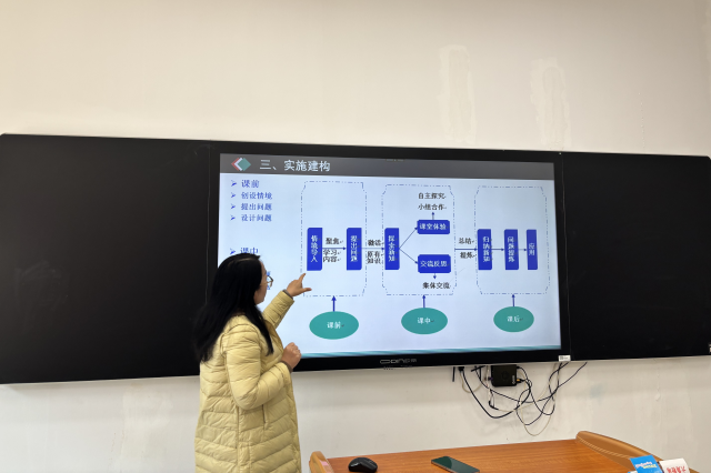 在集体研讨环节,薛蓓蓓老师率先进行了经验分享。老师们根据薛老师分享的内容,围绕“一课一问,一问一法”教学改革展开了热烈讨论。有的老师提出,可以通过创设生活情境,让学生感受到理论知识与生活的紧密联系;有的老师建议,利用AI技术手段,帮助学生直观地理解理论知识的实践指导意义;还有的老师认为,组织小组合作探究活动,让学生在动手操作中,自主探究,培养学生的合作能力和探究精神。在教学设计过程中,应注重引导学生联系生活实际,加深对理论知识的认知。讨论环节,现场讨论热烈,思维火花频现,形成了“全员共研、全员共享”的教研生态。