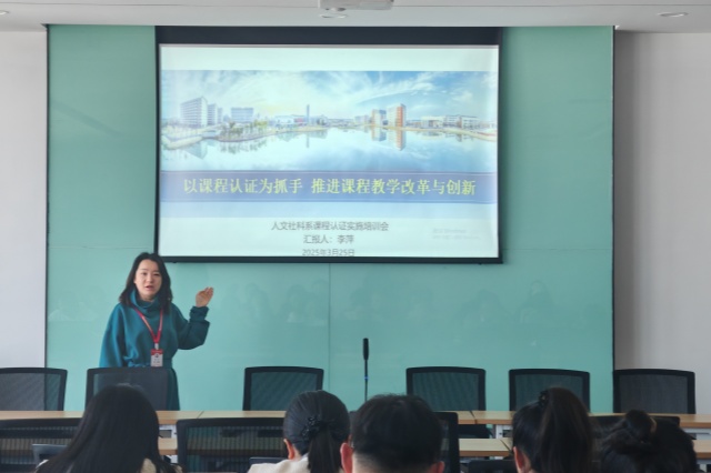2025年3月25日下午,人文社科系在弘毅楼702成功开展了主题为“以课程认证为抓手,推进教学改革与创新”的教学研讨会,会议由李萍老师主讲,全系教师均参加了本次会议。本次教学研讨会围绕课程认证实施开展培训,旨在提升课程建设质量,推动教学改革向纵深发展。