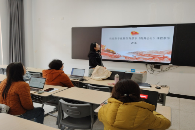 为适应数字化时代的教育需求,进一步推动教学工作与数字化技术的深度融合,提升教学质量,2025年4月1号下午,会计教研室在博学楼109召开了以“教育数字化转型背景下《财务会计》课程教学改革”为主题的教研活动,会议由薛蓓蓓老师主持。