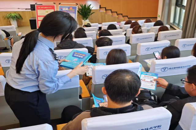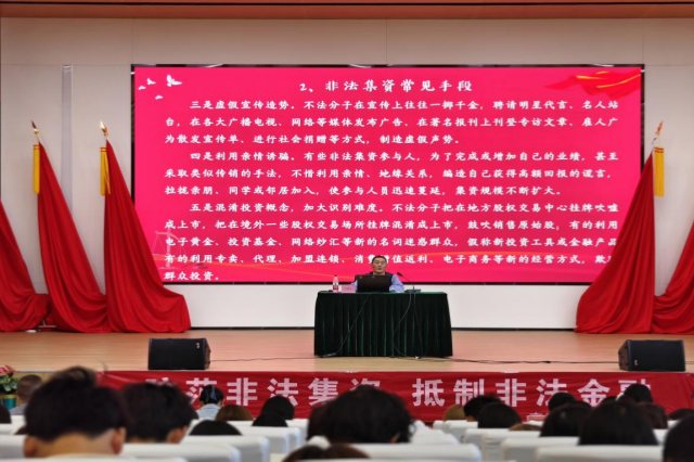 南京市高淳区发展和改革委员会的唐胜芳科长深入剖析非法集资类诈骗,通过一个个真实生动的案例,详细介绍了此类诈骗的常见形式、严重危害以及有效的防范方法。同学们聚精会神地聆听,深刻认识到非法集资背后隐藏的巨大风险,进一步增强了对这类诈骗的警惕性。