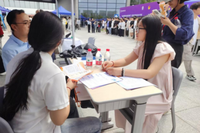 二是服务细致周到。系学生会组建了求职助力团,为同学们提供简历指导、面试技巧咨询等服务。现场还设置了求职加油站,备有应急文具、饮用水等物资。