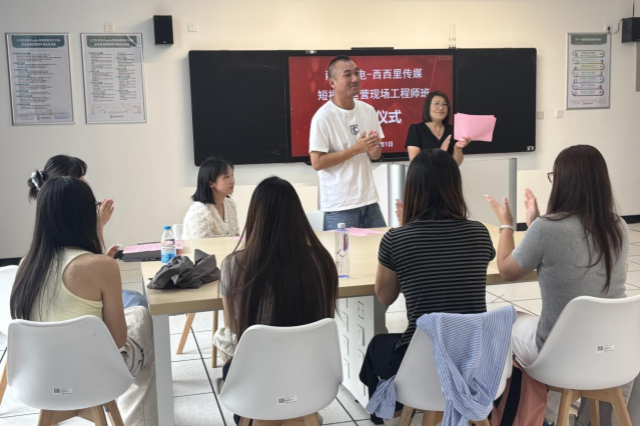 西西里传媒运营总监陶钰莹在致辞中介绍了企业的发展历程和行业成就。她强调,作为业内领先的MCN机构,公司将充分发挥在内容创作、账号孵化和商业转化等方面的专业优势,为学生提供沉浸式实践平台和行业前沿项目实训机会,助力学员掌握核心竞争力。行政总监邢夏飞详细阐释了1+1+1阶梯式培养模式:第一阶段夯实通识教育与专业基础,第二阶段强化专业核心能力培养,第三阶段深入企业开展实战训练。他表示,公司将组建由资深技术专家和知名内容创作者构成的双师型教学团队,为学生提供全方位、多维度的成长指导。