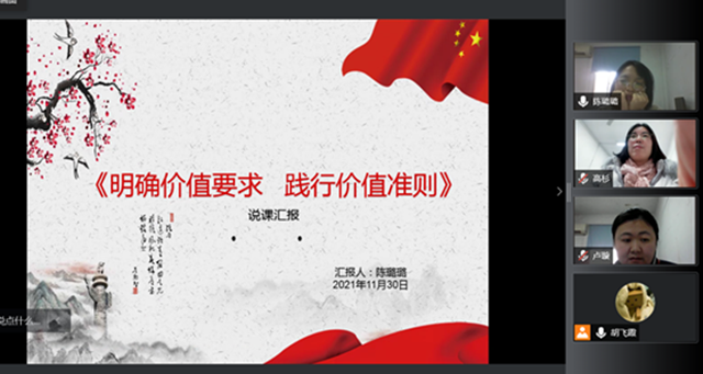 紧接着,陈老师以《思想道德与法治》第四章《明确价值要求 践行价值标准》为例进行了一个完整的说课示范。她的讲解透彻、细致、生动、实用性强,使在座教师深受启发。