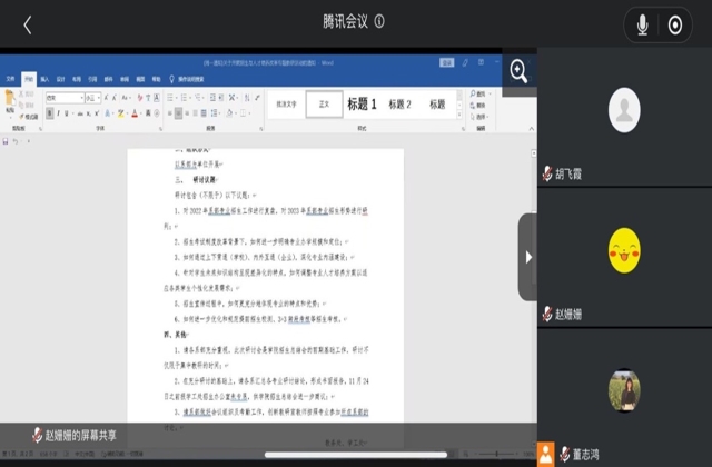 2022年11月22日下午,思政中心全体教师在线上召开教研会议,围绕着“针对学生未来知识结构呈现差异化的特点,如何调整专业人才培养方案以适应各类学生个性化发展需求”这一主题进行研讨,会议由董志鸿老师主持。