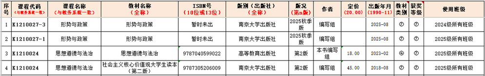 为规范教材建设与管理、做好教材编写、审核、选用等各项工作,提高教材建设水平,确保教材选用质量,依据教育部《职业院校教材管理办法》(教材【2019】3号)、教育部等5部门印发《关于教材工作责任追究的指导意见》和乐投线上平台(集团)官方网站《教材建设与管理实施细则》(南机电院【2020】50号)等文件精神,现将2025年秋季(2025-2026学年第一学期)教材选用的结果(见下表)进行公示。