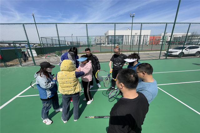 本周教研活动是网球内容教学的第一课,对握拍方式到正手击球的基本脚步移动到正手击球动作进行一一介绍,通过徒手练习和多球的方式,教研室所有教师都进行体验和学习。