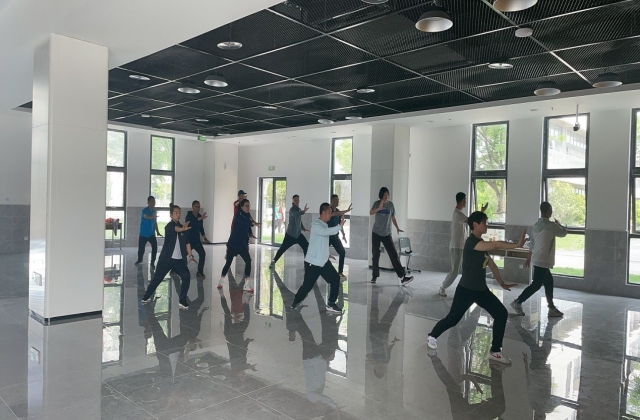 2023年4月18日下午,体育教研室全体教师在善学楼大厅开展关于二十四式太极拳的动作规格和教学方法的讨论,会议由俞晓蕾老师主持。