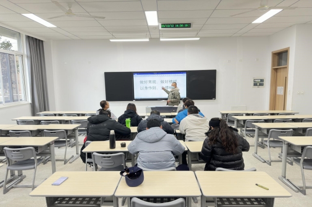 2023年12月12日下午,体育教研室在博学楼105开展“做好常规,做好榜样,以身作则,立德树人”专项教研活动,活动由汤宁老师主讲,李庆路老师主持。