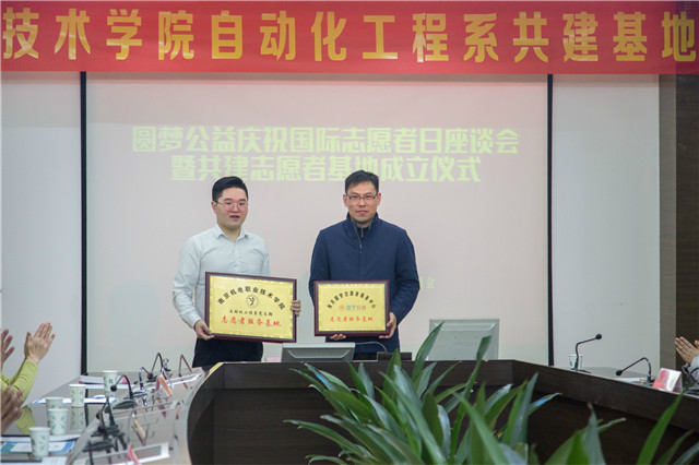 为深入学习贯彻党的十九大精神,12月5日,乐投线上平台(集团)官方网站自动化工程系与南京圆梦公益共建志愿者服务基地签约仪式在兴隆大街188号建邺社区报告厅顺利举行,双方对圆梦公益活动的开展进行了深入研讨。参加本次仪式的有我系主任潘理平、书记张宝中、副主任张海红以及全体教师、辅导员。