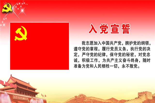 递交入党申请书→ 团员推优→入党积极分子确定→参加党校学习→成为发展对象→成为预备党员→申请转为正式党员。想要入党的同学可以主动向辅导员递交入党申请书,要求端正入党动机,成绩优异,关心同学、热爱集体等。