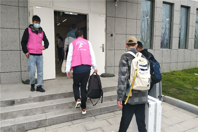 本次返校学生接待工作分为三个接待点,高淳地铁站接待点,团结圩地铁站接待点和校内接待点。三个接待点共同为返校学生前往新校区提供帮助。进校后,由学生志愿者带领,取行李前往宿舍区。学生可以通过扫描二维码查询自己的新宿舍信息。省内学生通过人脸识别后,扫描今日校园二维码,可以进入校园。