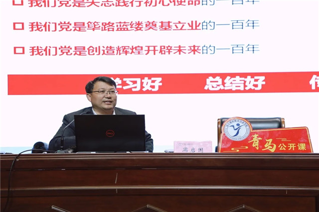 随后,党委工作部部长周启国为同学们开展“深入开展党史学习教育,筑牢意识形态工作阵地”主题讲座。周部长为同学们讲解了习近平总书记重要讲话中“学史明理,学史增信,学史崇德,学史力行,学党史,办实事,开新局”的含义,点明了在全党开展党史学习教育的重要性。周部长并表示,党史学习教育是一次“初心”追寻之旅,同学们要努力向党学习、向党看齐,继承和发扬党勇于自我革命的鲜明品格。