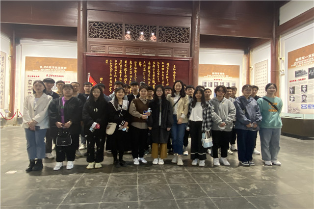 我院青马班全体学员于4月24日在指导老师唐钰峤的带领下,前往高淳老街新四军驻高淳办事处旧址和新四军第一支队司令部旧址开展“学党史、强信念、跟党走”主题教育研学,回顾革命历程,接受革命传统教育。使团员青年深刻认识党的光辉历程,树立正确的历史观,自觉将个人志向和民族命运有机结合,引领团员青年知史爱党,进一步发扬党的优良革命传统。